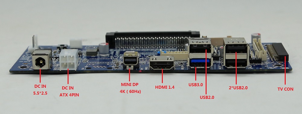 1*POWER開關 1*VGA 1*HDMI 1.4B 1*Audio out 1*MIC 3*USB 2.0 3*USB 3.0 1*RJ45 2*天線 1*OPS JAE 1*DC IN 1*AUTO POW ON |