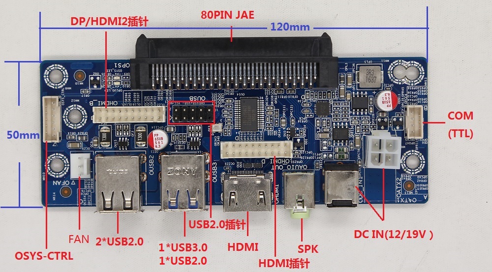 OPS子卡,也叫OPS轉(zhuǎn)接卡,或OPS轉(zhuǎn)接板,按照 INTEL(Open Pluggable Specification)開放式可插拔規(guī)范生產(chǎn),是將OPS電腦與一體機、電視機的內(nèi)部線路進行連接的一個橋梁,可以將一體機或電視機內(nèi)部電源,通過OPS JAE接口提供給OPS電腦主機,同時將OPS電腦的HDMI、DP、Audio、USB、COM、開/關(guān)機等信號通過OPS JAE接口與觸控一體機的液晶屏驅(qū)動板、喇叭、觸摸框、開關(guān)等部件進行對接,通過拔插即可實現(xiàn)觸控一體機、液晶電視機與OPS電腦主機之間連接使用!